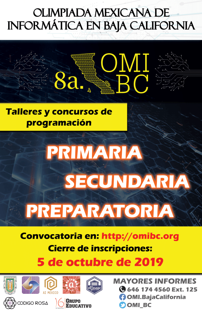 La 8a. edición de la Olimpiada Mexicana de Informática en Baja California (OMIBC) está por comenzar. Es importante que los maestros, padres de familia y alumnos lean detenidamente la convocatoria del ciclo 2019-2020.